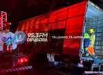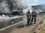 Caminhões pegam fogo após colisão e provocam interdição total na BR-365