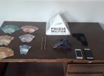 Polícia apreende submetralhadora e tabletes de drogas após denúncia