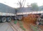 Carreta tomba na BR-365 e deixa trânsito em meia pista