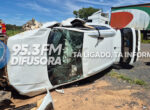Corpo de bombeiros e SAMU socorrem motorista que capotou veículo no bairro Serra Negra
